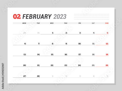 annual, weekday, calendar, week, note, date, day, buttons, white, layout, event, digital, number, isolated, year, monday, design, schedule, corporate, flier, monthly, template, 2023, minimalist, vector, kit, planner, landscape, stationery, poster, february, today, style, sunday, outline, paper, desktop, booklet, element, organiser, business, page, plan, grid, new, table, printable, month
