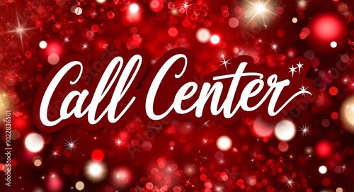 call center calligraphic lettering on red bokeh glitter festive sparkles background