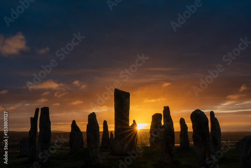 Callanish Standing Stones silhouetted against a vibrant sunrise