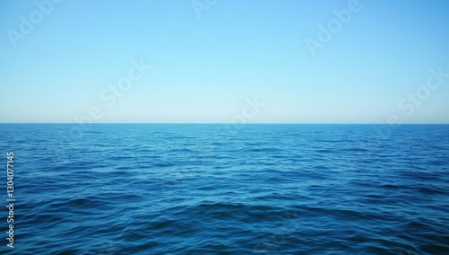 Calm and Serene Ocean View Under Clear Blue Sky with Gentle Waves Rippling Across the Water Surface in Peaceful Coastal Landscape