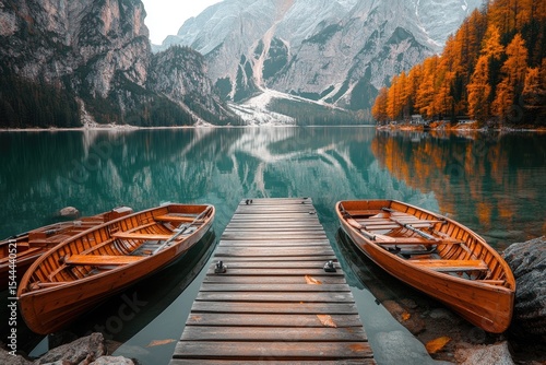 lake, autumn, mountain, boat, dock, water, calm, serene, peaceful, nature, scenic, tranquil, colourful, tree, fall, gold, orange, red, brown, wooden, pier, alpine, still, landscape, exterior, cabin, travel, vacation, tour tourism, explore, beauty, view, amazing, stunning, picturesque, forest