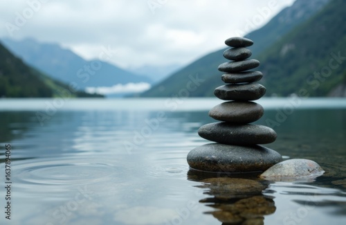 stone, water, lake, mountain, landscape, nature, calmness, peaceful, scenic, sky, cloudy, horizon, calm, serenity, rock, balance, minimalist, natural, environment, peacefulness, wilderness, stillness, harmony, zen, meditation, relaxation