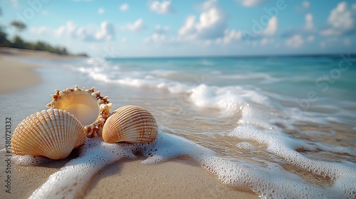 tranquil, beach, scene, spring, seashell, sand, water, ocean, wave, sky, cloud, nature, landscape, coastal, vacation, relaxation, horizon, shore, summer, travel, sunny, beauty, serenity, environment, peaceful, marin, sunlight, blue, vibrant