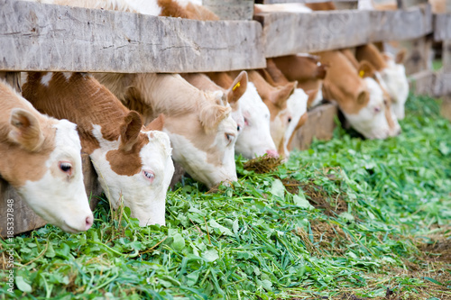 farm, cow, calf, eat, grass, head, domestic, animal, cattle, farm animal, bovine, rural, agricultural, farming, heavy, beast, sector, husbandry, forage, eat, provender, fodder