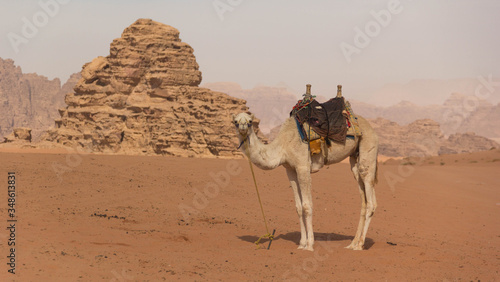 Camels in the martian land in the Wadi Rum
