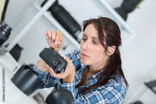 woman, camera, screw, adult, object, disassemble, technical, macro, spare, working, screw, photographic, mirror, electronic, detail, part, expert, isolated, technician, black, view, white, service, computer, background, group, board, inside, screwdriver, box, equipment, shutter, professional, metal, device, photo, circuit