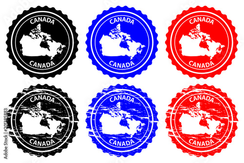Canada - rubber stamp - vector, Canada continent map pattern - sticker - black, blue and red
