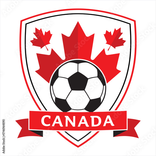 Canada Football Logo Badge with Maple Leaf and Soccer Ball
