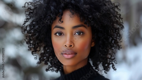 Candid Close-up of Woman with Curly Afro Hair and Soft Focus Background