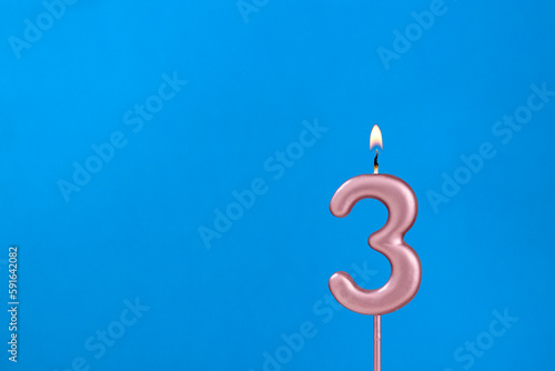 Candle number 3 - Birthday in blues foamy background