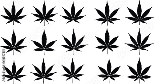 cannabis, leaf, ganja, herb, plant, silhouette, botanical, wild plant, hemp, nature, black, grid, vector, symmetric, 7
