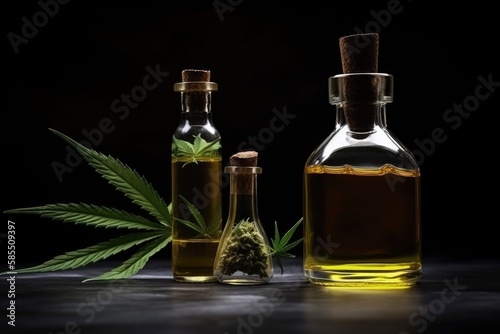 essential oil, hemp, merchandise, flower, bottle, medicine, plant, tincture, alternative medicine, blossom, botany, bud, closeup, concept, container, copy space, cultivated, equipment, farm, forbidden, grass, growth, hashish, herb, herbal medicine, leaf, liquid, narcotic, no people, photo, table, vertical