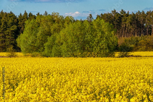 field, yellow, landscape, agriculture, sky, nature, flower, canola, rapeseed, spring, farm, summer, blue, oil, meadow, plant, rural, countryside, flower, crop, seed, oilseed, cloud, farming, green