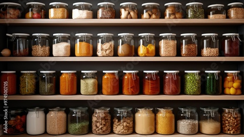 can, pantry, kitchen, illustration, shelf, jar, spice, food, box, pasta, organised, minimalist, design, bright, clean, storage, ingredient, tidy, container, label, neat, arrangement, space, order, accessibility, convenience, efficiency, functionality, aesthetic, modern, streamlined