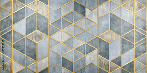 Canvas poster with gray-gold and bluish geometric shapes in wallpaper style, canvas poster, gray, gold, bluish