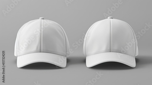 Cap Mock Up. White Baseball Caps Front and Back Side on Grey Background for Advertising Apparel