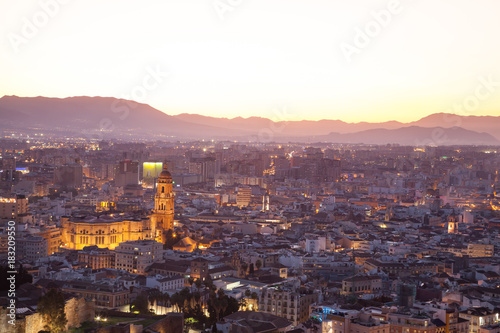 spain, empire, renaissance, mediaeval, baroque, andalusia, historical building, ancient, architecture, castle, dusk, cathedral, reflections, city landscape, europa, climate, sunset, night, city landscape, horizontal, path, mountain, south, roman, arabic, christianity, summer, season, copy space, panoramic, up high, line, andalusia, metropolitan, bullring, citadel, past, málaga