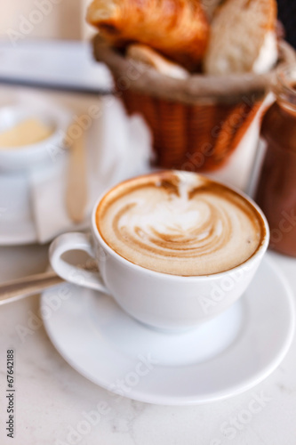 hot, cup, foam, cappuccino, mocha, cafes, table, bread, basket, natural, milk, spoon, caffeine, white, liquid, hot drink, brown, beverage, aroma, drink, break, latte, breakfast, croissant, eatery, chocolate, butter, morning, roasted, mug, saucer, espresso, froth, taste, retro, cream, colours, house, ceramic, food