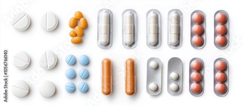 Capsules Medicine Panel And Pills Isolated On White Background With Clipping Path