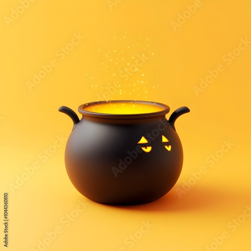 Captivating 3D of a magical cauldron with a mystical Halloween theme,set against a contrasting plain background. This image evokes a sense of spooky enchantment,supernatural wonder.