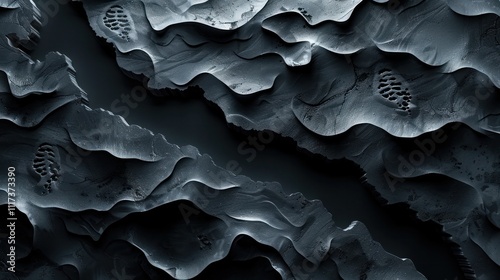 Captivating abstract textural design featuring a dark monochrome palette with fluid organic shapes and dramatic lighting effects This visually striking and conceptual image evokes a sense of depth