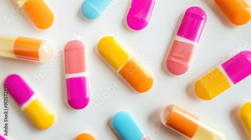Captivating arrangement of colorful pills on a white background, highlighting the pharmaceutical side of healthcare and medication