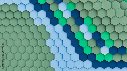 Captivating blue hexagon pattern with dynamic levels as background.