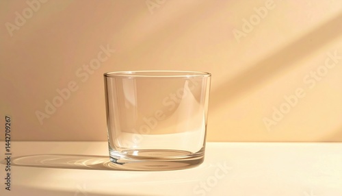 Captivating glass cup on minimalist surface indoor still life photography soft lighting modern aesthetic