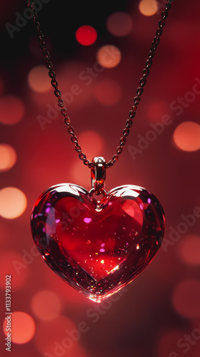 Captivating Red Heart Pendant Elegantly Displayed on a Vivid Red Background, Symbolizing Love and Passion with a Touch of Glamour, Perfect for Romantic Themes and Jewelry Promotions