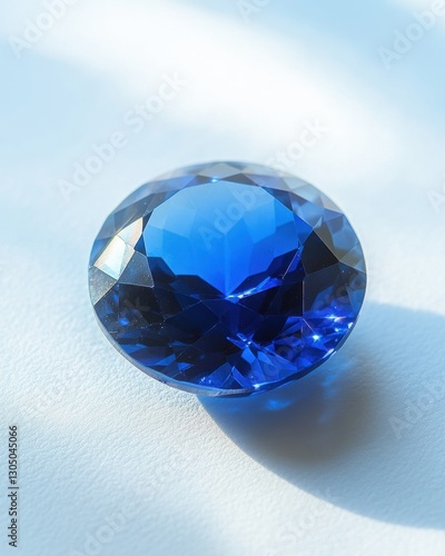 Captivating sapphire gem on soft white surface reflecting light showcasing facets and rich color in elegant macro shot