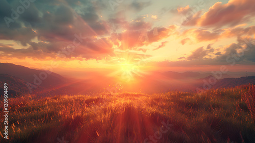 sunrise, sunset, lens flare, landscape, sunlight, dramatic, cinematic, depth, horizon, nature, light rays, realism, scenic, picturesque, illumination, backlit, bright, atmospheric, glowing, sunbeam, golden hour, shadow play, daybreak, dawn, dusk, scenery, morning light, evening light, breathtaking, natural beauty, serene, tranquil, environment, majestic, outdoors, sun ray, contrast, evocative, aglow