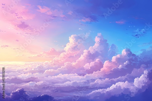 Captivating view of a colorful sunset sky with pink and blue clouds, evoking a serene and dreamlike ambiance.