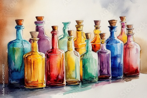 Captivating Watercolor Artwork Showcasing Vintage Bottles