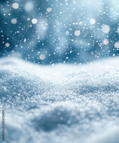 Captivating Winter Wonderland Scene with Gentle Snowflakes Falling on Sparkling White Snow, Creating a Dreamy Atmosphere of Serenity and Tranquility in a Frosty Landscape
