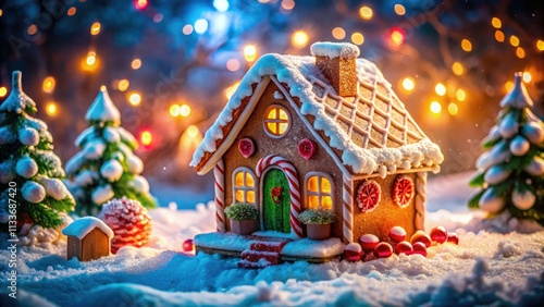 gingerbread house, winter, snow, holiday, christmas, portrait, photo, festive, home, sweet, fairy tale, whimsical, candy, frosting, detail, intricate, lighting, warm, soft, snowy, scene, realistic, texture, hi-res, bungalow, architecture, delicious, treat, winter landscape, holiday season, december, celebration, magic, cosy, charming, beautiful, picturesque, seasons greetings, merry christmas, happy holiday, winter scene, holiday lights, gingerbread, frost, ice