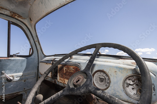 dashboard, steering, wheel, vintage, grunge, rust-eaten, car, veteran, old-timer, desert, old, rust, automobile, transportation, vehicle, abandoned, metal, damaged, wreck, broken, destruction, accident, destroyed, classic, antique, transport, rusted, auto, countryside, rustic, rural, obsolete, blue, sky