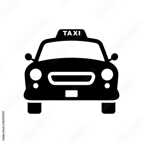 Car icon. Taxi. Black silhouette. Front view. Vector simple flat graphic illustration. Isolated object on a white background. Isolate.