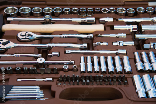 box, chrome, equipment, hardware, industrial, industry, instrument, kit, maintenance, mechanic, metal, repair, screwdriver, service, set, spanner, steel, tool, toolbox, work, workshop, wrench