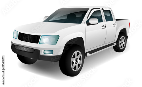 Car pickup, truck mockup realistic white isolated on the background. Ready to apply to your design. Vector illustration.