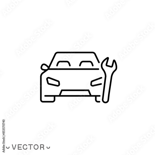 car service icon, auto repair station, thin line symbol isolated on white background, editable stroke eps 10 vector illustration