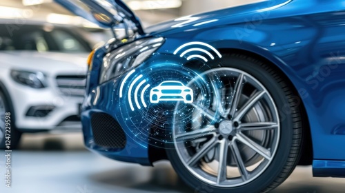 Car technology innovations automotive workshop digital content high-tech environment close-up view vehicle safety concepts