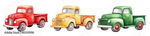 car, cartoon, clip art, collection, cut-out, cute, element, font, illustration, in a row, isolated, land vehicle, model car, kfz, many-coloured, red, set, side by side, sticker, still life, studio shot, toy, toy car, truck, vehicle, vintage car, watercolor, wheel, white background, yellow