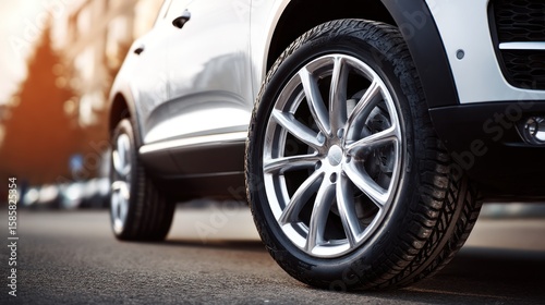 Car with four tires, clean modern shot of automobile detail