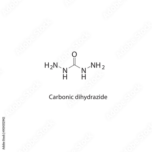 Carbonic dihydrazide skeletal structure. Hydrazide compound schematic illustration. Simple diagram, chemical formula.