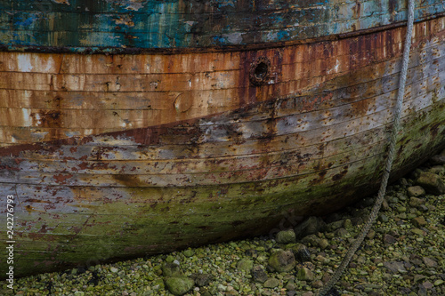Carcasse de vieux bateau, texture bois et rouille