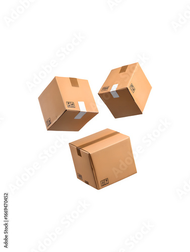 Cardboard parcel boxes that are closed and taped, in a falling position