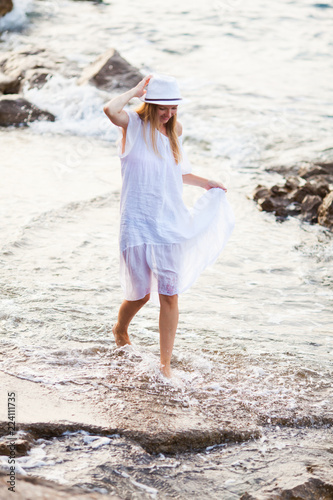 girl, sea, travel, vacation, young, beach, woman, holiday, summer, water, blue, caucasian, relax, seafront, walking, day, embankment, hot, journey, motion, nature, person, resort, sunlight, white, careless, lifestyle, seacoast, model, female, promenade, happiness, dress, people, health, wave, sunshine, leg, morning, pink, splash, 1, freedom, blond, pretty, stone, vocation