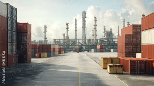 industrial complex, refinery, factory, production, manufacturing, industry, industrial, plant, petrochemical, chemical, oil, gas, energy, power, storage, transportation, logistic, shipping, import, export, business, global, commerce, trade, economy, sky, cloud, concrete, asphalt, ground, industrial area, industrial zone, infrastructure, engineering, steel, metal, construction, building, safety, hazard, warning, yellow, brown