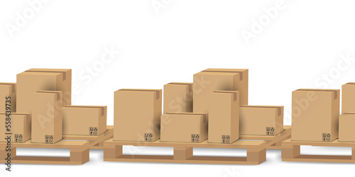 Cargo delivery and transportation industry concept stacked cardboard boxes on wooden shipping pallet isolated on white background illustration