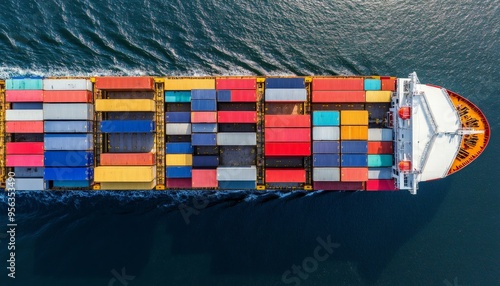 cargo, ship, container, shipping, freight, logistic, ocean, water, sea, transport, container, maritime, blue, vessel, trade, global, earth, marin, international, commerce, export, import, delivery, transportation, industry, business, waterway, harbor, dock, port, watercraft, navigation, shipment, aerial, view, overhead, top